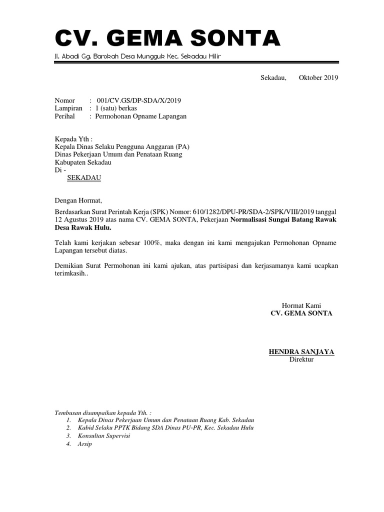 Surat Permohonan Opname Pekerjaan Latest Letter Website